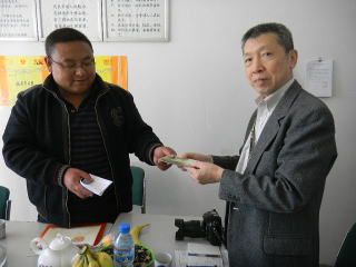 先生5名、全校生徒45名、学前班2名皆元気で明るい生徒さんでした。趙校長より生徒父母からの東日本大震災義援金268元をいただきました。富士見市日中友好協会からは記念品を贈呈いたしました。