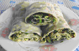 | (11)蒸していきます。蒸し器には水を多めに入れ、沸騰したら、蒸篭に少しサラダ油を塗り、巻いたものを入れていきます。それぞれの具が入ったものは別に分けて蒸します。 |