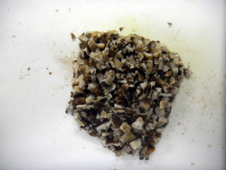 青菜(小松菜)をお湯の中に入れ軽く火を通した後に、水で冷やして、水分絞りと、みじん切りにします。