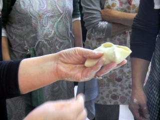 お手本をお見せしますので、一緒に包子を作っていきます。