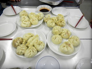 完成した包子をそのまま、或る醤油、辣油などで作ったタレにつけて食べます。