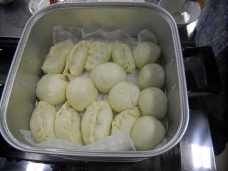 十分蒸気が出始めてから、肉まん20分、野菜まん15分、あんまん15分程度蒸します。