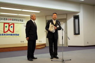 富士見市日中友好協会加藤会長に贈呈
